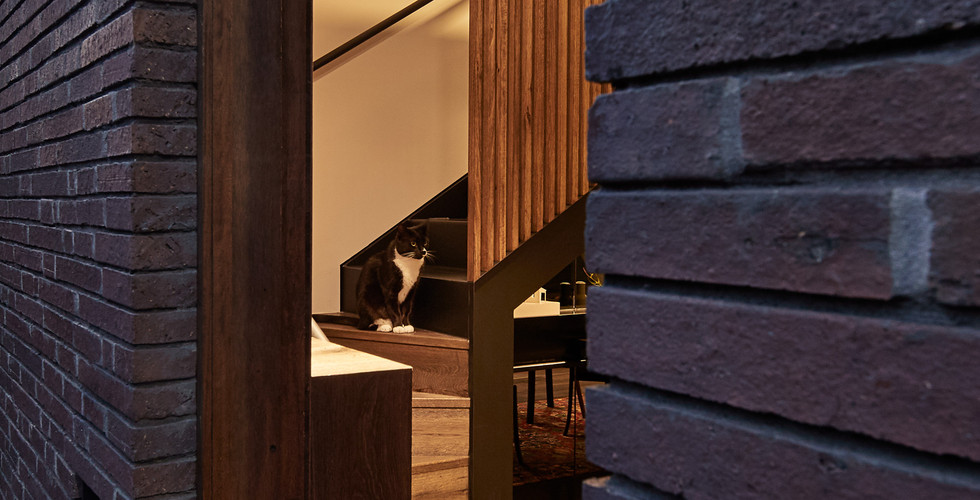 Wilson Tang, of Sonelo Design Studio, did this exceptionally well. Driven by his client’s strong wish to use bricks, Wilson’s recommendation of using Krause Emperor bricks for the external walls and courtyard perfectly fit the bill. These stunning bricks, in Grampian Blue, provide a beautiful complement to the red brick of the adjoining building, along with the bluestone cobble in the rear lane, perfectly suiting Carlton’s Victorian era streets. But on top of that, the biggest selling point for Wilson’s client was the fact that the Emperor bricks are locally made, by Krause Bricks in rural Victoria.